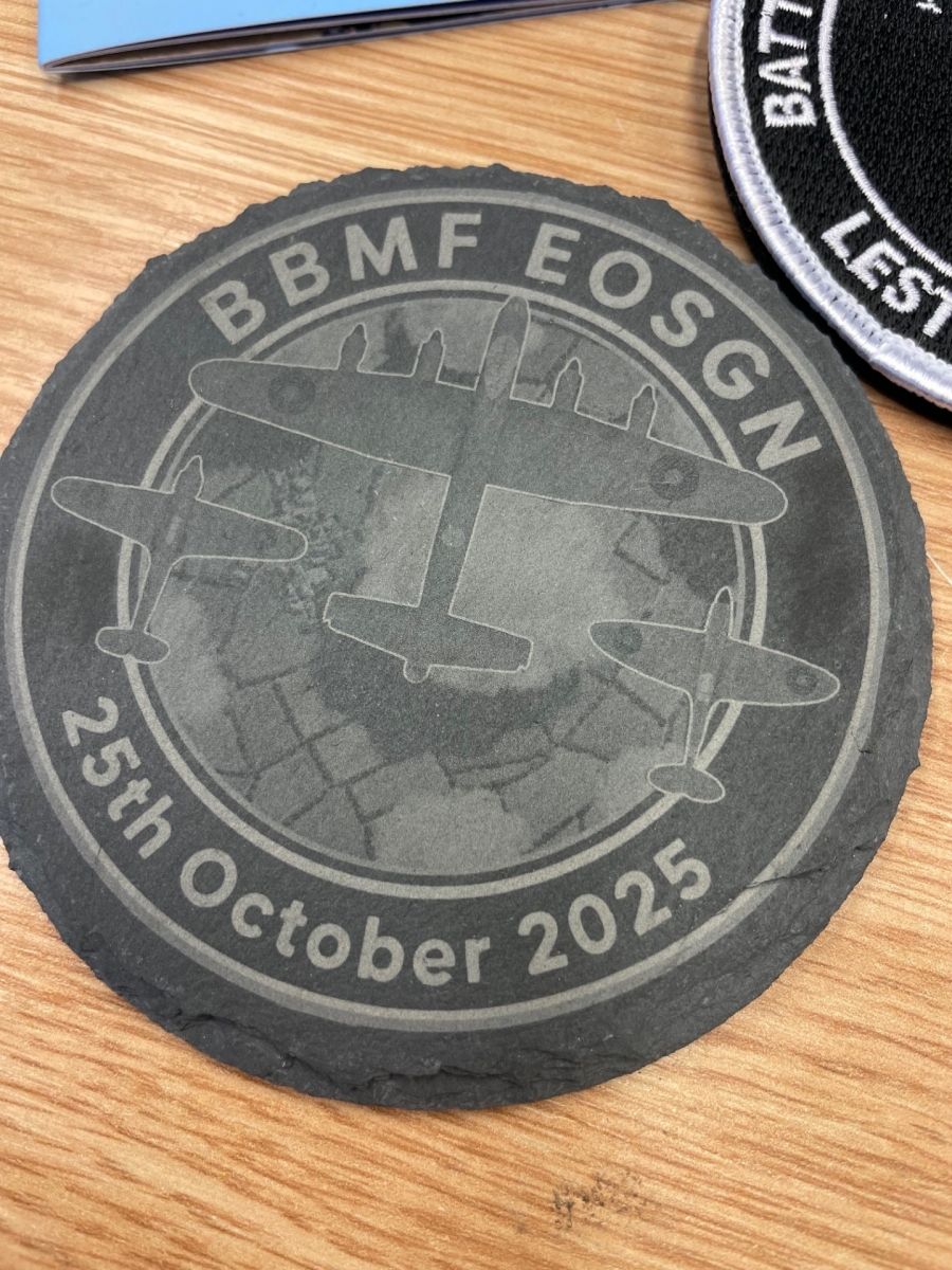- Two coasters featuring the BBMF EOSGN title, date and logo